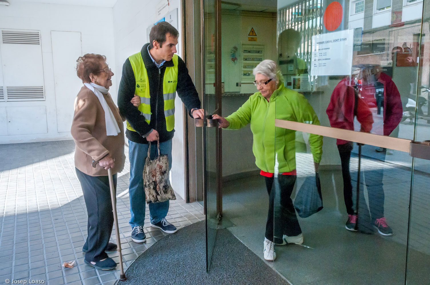 Jóvenes con síndrome de Down acompañan a estas personas mayores desde su domicilio al Casal. De este modo los ancianos salen de su aislamiento, pueden relacionarse con más personas y disfrutar del amplio abanico de posibilidades que les ofrece el Casal: actividades lúdicas, formativas, deportivas, artesanales y de acercamiento a las nuevas tecnologías. Para los jóvenes con síndrome de Down supone la inserción laboral y favorece su autoestima. Estos jóvenes cuentan con la formación y la supervisión de los profesionales de la Fundació Catalana Síndrome de Down.